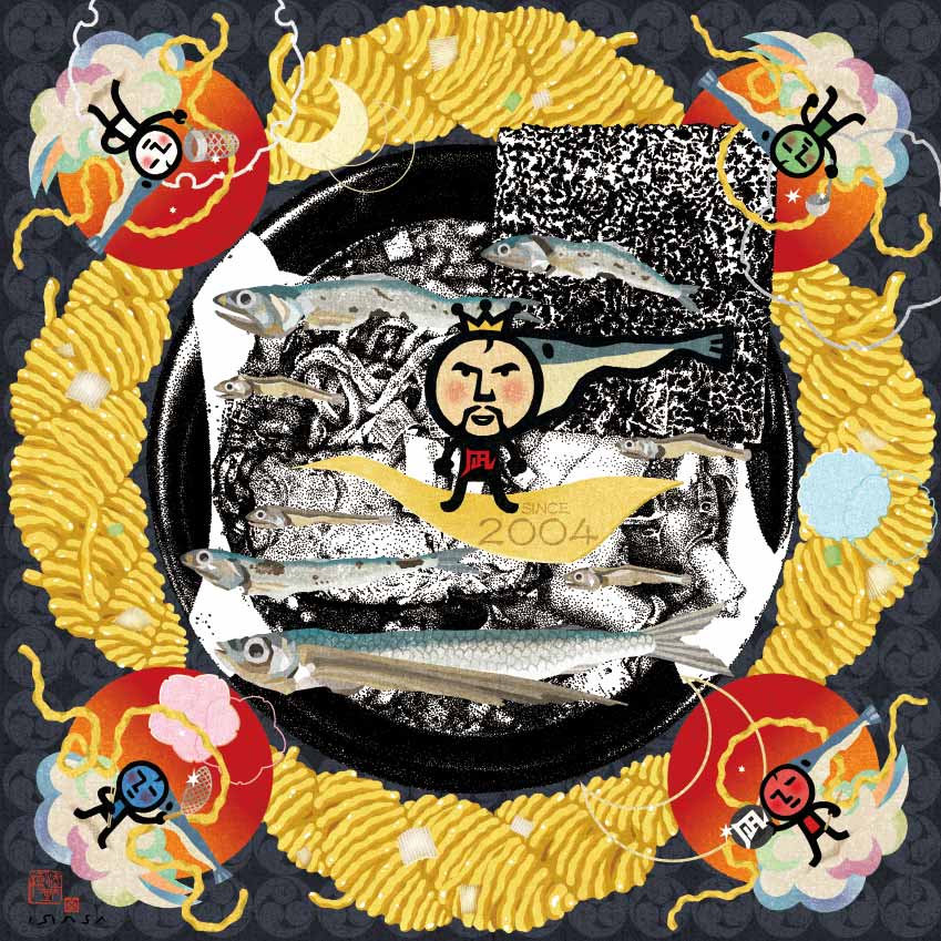 店舗用イメージアート『 吉祥煮干魚凪麺大王招福図 』