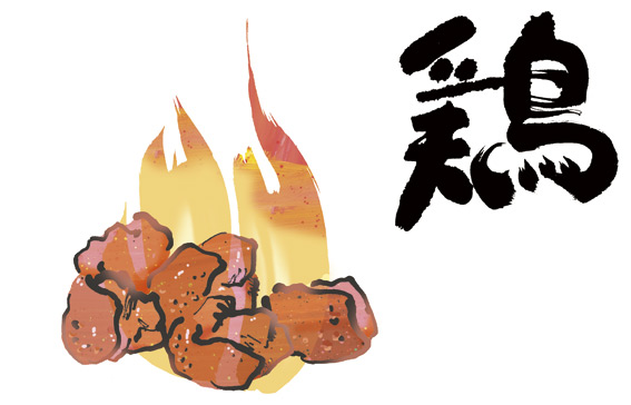 「やっちょっど」さんのメニューブック用に描いた描き文字とイラストです。